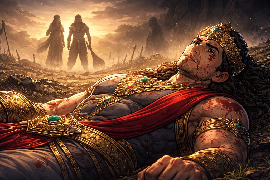 महाभारत का सबसे गूढ़ क्षण युद्ध की शुरुआत में नहीं, बल्कि उसके अंत में आता है—जब दुर्योधन पराजित अवस्था में धरती पर पड़ा होता है। यही वह बिंदु है जहाँ कथा स्वयं निर्णय देने से रुक जाती है और पाठक को सोचने के लिए छोड़ देती है।