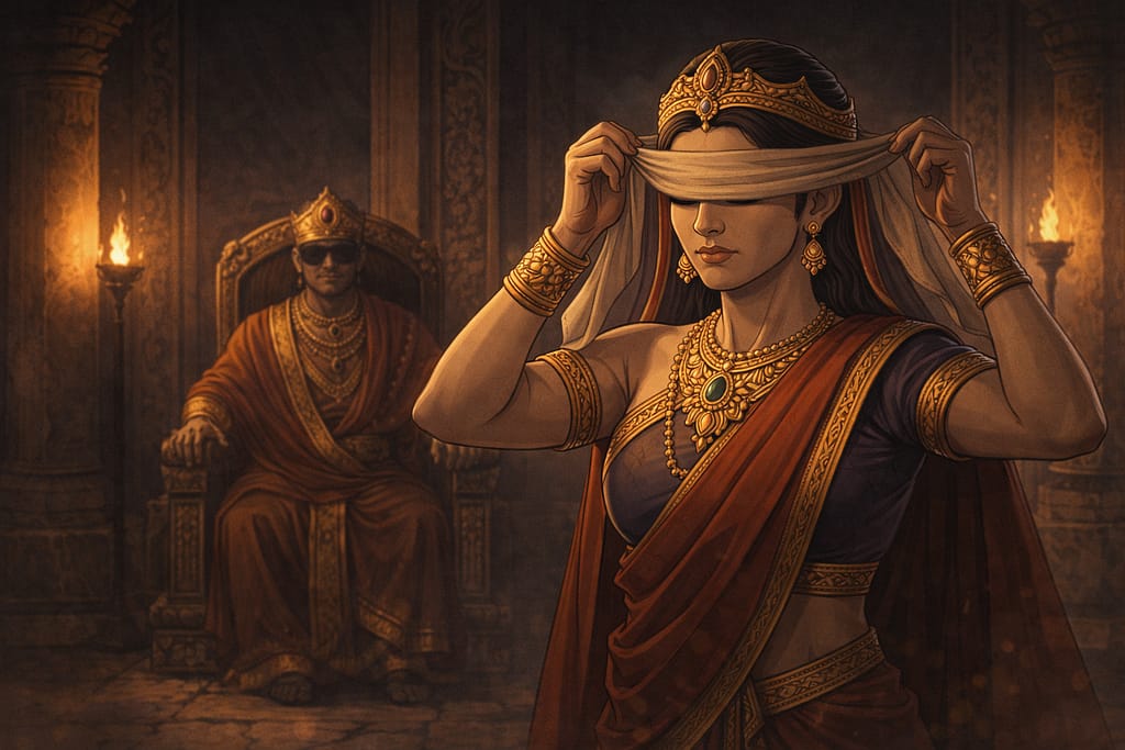 गांधारी जानती थीं कि धृतराष्ट्र जन्म से अंधे हैं। लेकिन वह यह भी जानती थीं कि सत्ता, दृष्टि और विवेक—तीनों एक साथ चलें, यह आवश्यक नहीं। अंधापन केवल आँखों का नहीं होता।