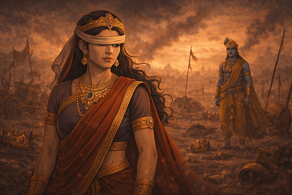 महाभारत यहीं स्पष्ट करती है कि गांधारी का अंधापन कभी कमजोरी नहीं था—लेकिन उनका मौन समय के साथ दायित्व बन गया था।