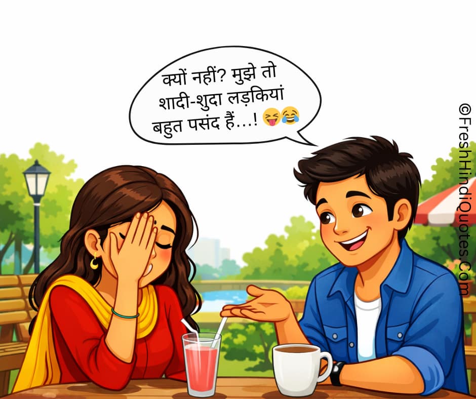 рд▓рдбрд╝рдХрд╛ тАУ рдореИрдВ рддреБрдореНрд╣рд╛рд░реЗ рд╕рд╛рде рд╢рд╛рджреА рдирд╣реАрдВ рдХрд░ рд╕рдХрддрд╛, рдШрд░ рд╡рд╛рд▓реЗ рдирд╣реАрдВ рдорд╛рди рд░рд╣реЗред рд▓рдбрд╝рдХреА тАУ рддреБрдореНрд╣рд╛рд░реЗ рдШрд░ рдореЗрдВ рдХреМрди-рдХреМрди рд╣реИ? рд▓рдбрд╝рдХрд╛ тАУ рдПрдХ рдмреАрд╡реА рдФрд░ рджреЛ рдмрдЪреНрдЪреЗред ЁЯШВ