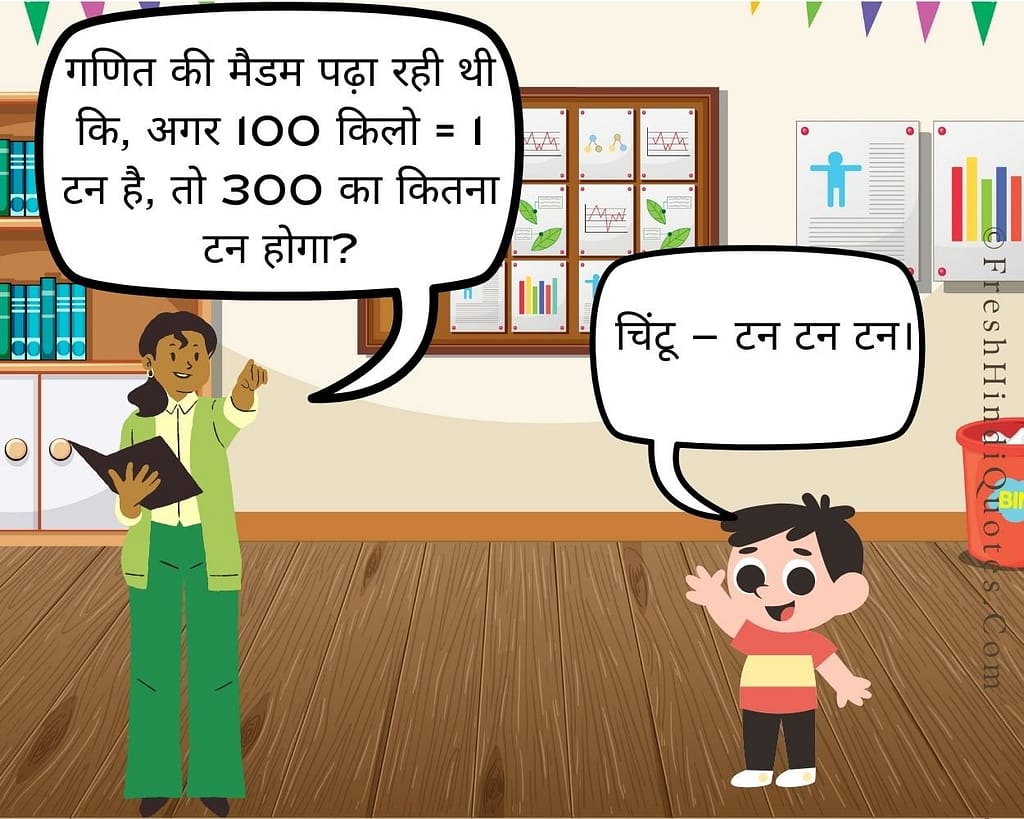 गणित की मैडम पढ़ा रही थी कि, अगर 100 किलो = 1 टन है, तो 300 का कितना टन होगा?