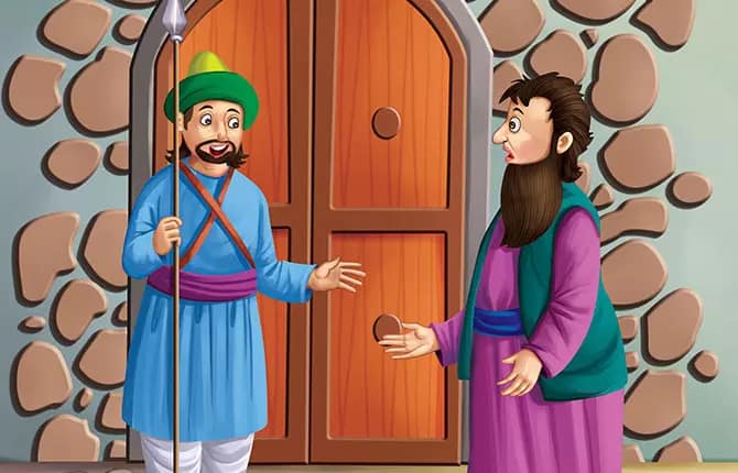 जब वे दावत के लिए पहुंचे तो घर के बाहर पहरा दे रहे दरबान ने उन्हें अंदर जाने से रोक दिया। उन्होंने दरबान से कहा, “मैं मुल्ला नसरुद्दीन हूं। मैं इस दावत का खास मेहमान हूं।” दरबान ने हंसते हुए कहा, “वो तो दिखाई दे रहा है।” फिर दरबान ने धीरे से मुल्ला के कान में कहा, “अगर तुम दावत के लिए आए मुल्ला नसरुद्दीन हो, तो मैं खलीफा हूं।” यह सुनकर उसके साथ खड़े अन्य दरबान जोर-जोर से हंसने लगे। फिर दरबान ने उन्हें वहां से जाने के लिए कहा और दोबारा आने से मना कर दिया।