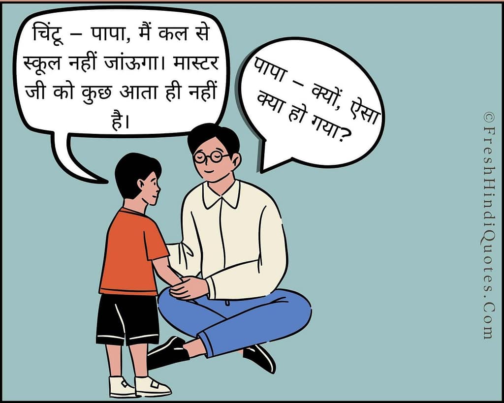 चिंटू – पापा, मैं कल से स्कूल नहीं जांऊगा। मास्टर जी को कुछ आता ही नहीं है।