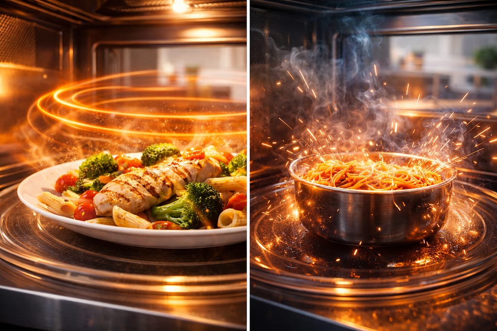 अब सवाल यह है — माइक्रोवेव सुरक्षित है या नहीं और इसमें कौन सी चीजें नहीं रखनी चाहिए?