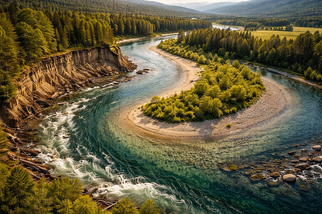 नदी का घुमाव केवल एक सुंदर दृश्य नहीं, बल्कि यह प्रकृति का संतुलन बनाए रखने का तरीका है।