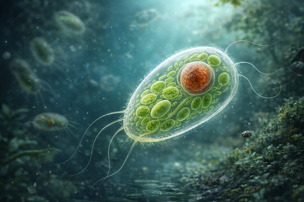 इस जीव के भीतर क्लोरोप्लास्ट पाए जाते हैं।