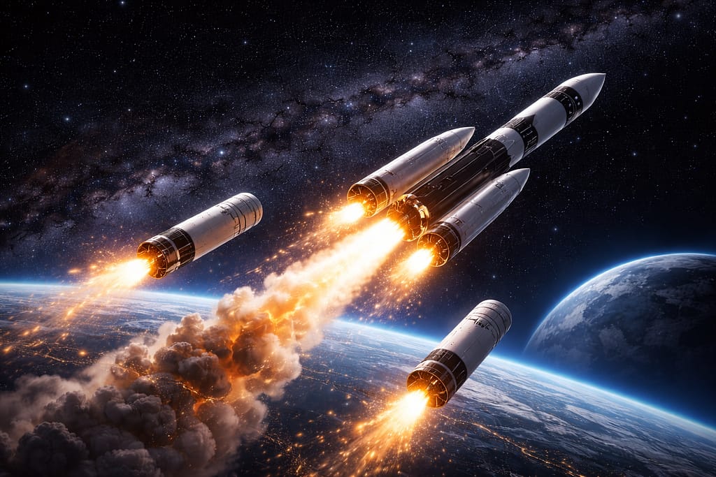 रॉकेट की गति, उसका ईंधन और उसका डिजाइन — तीनों मिलकर तय करते हैं कि वह कितनी दूर जा सकता है।
