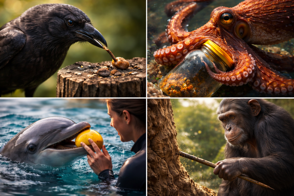कुछ प्रयोगों में कौवों ने कई चरणों वाली पहेलियाँ हल कीं—जो पहले केवल इंसानों और वानरों से संभव मानी जाती थीं।