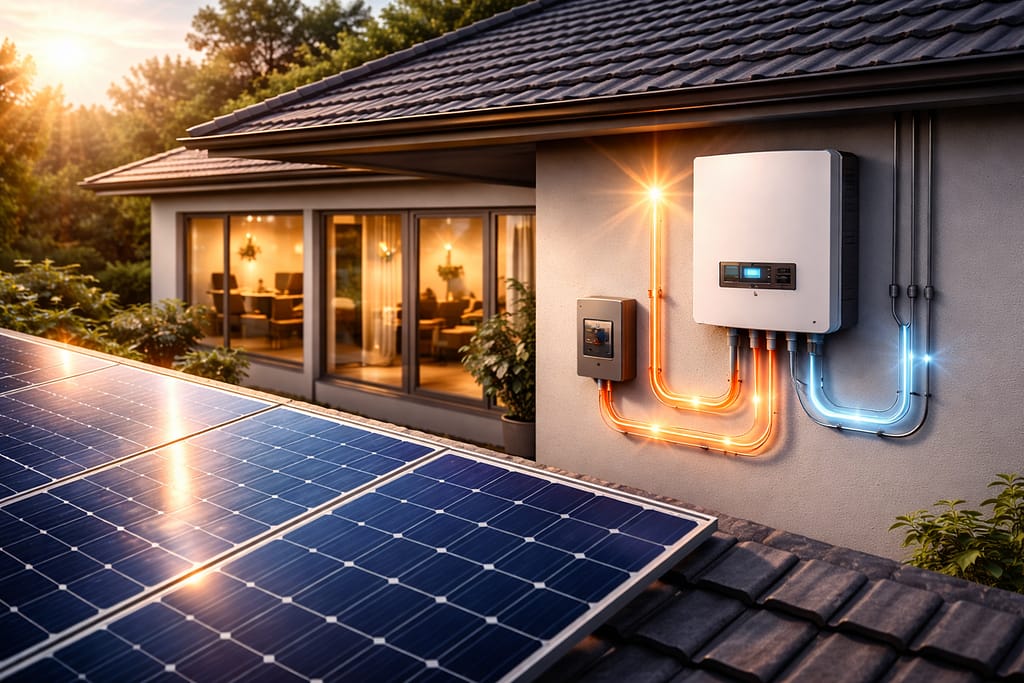 इन्वर्टर सोलर पैनल से आने वाली DC बिजली को AC बिजली में बदल देता है।