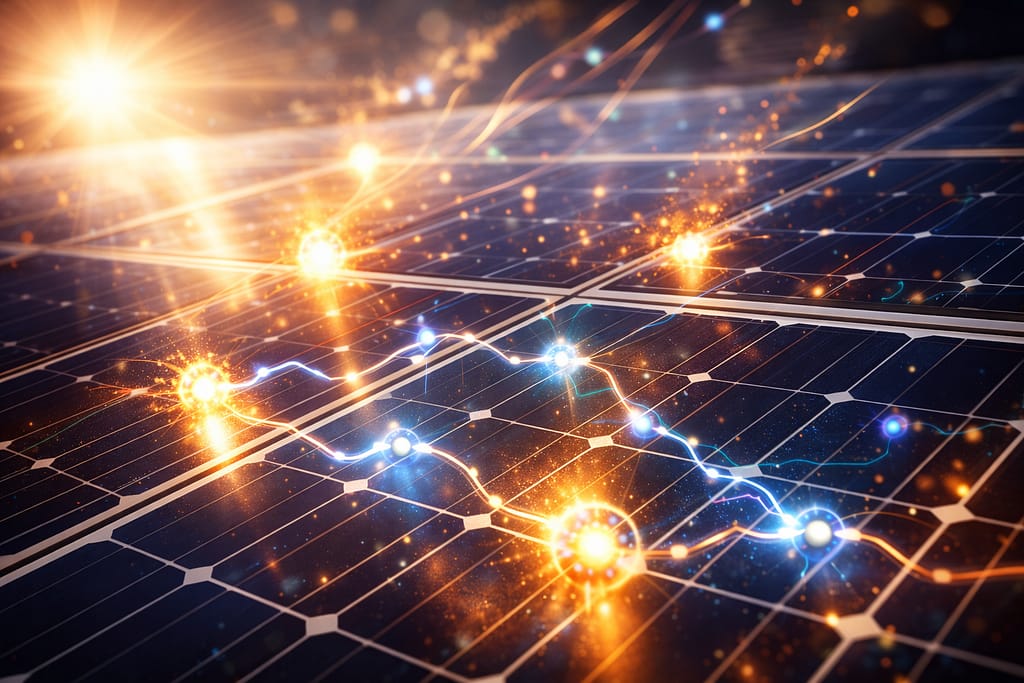 सोलर पैनल सूर्य की रोशनी को पकड़कर उसे इलेक्ट्रॉनों की गति में बदलते हैं, और यही गति आगे चलकर बिजली बन जाती है।