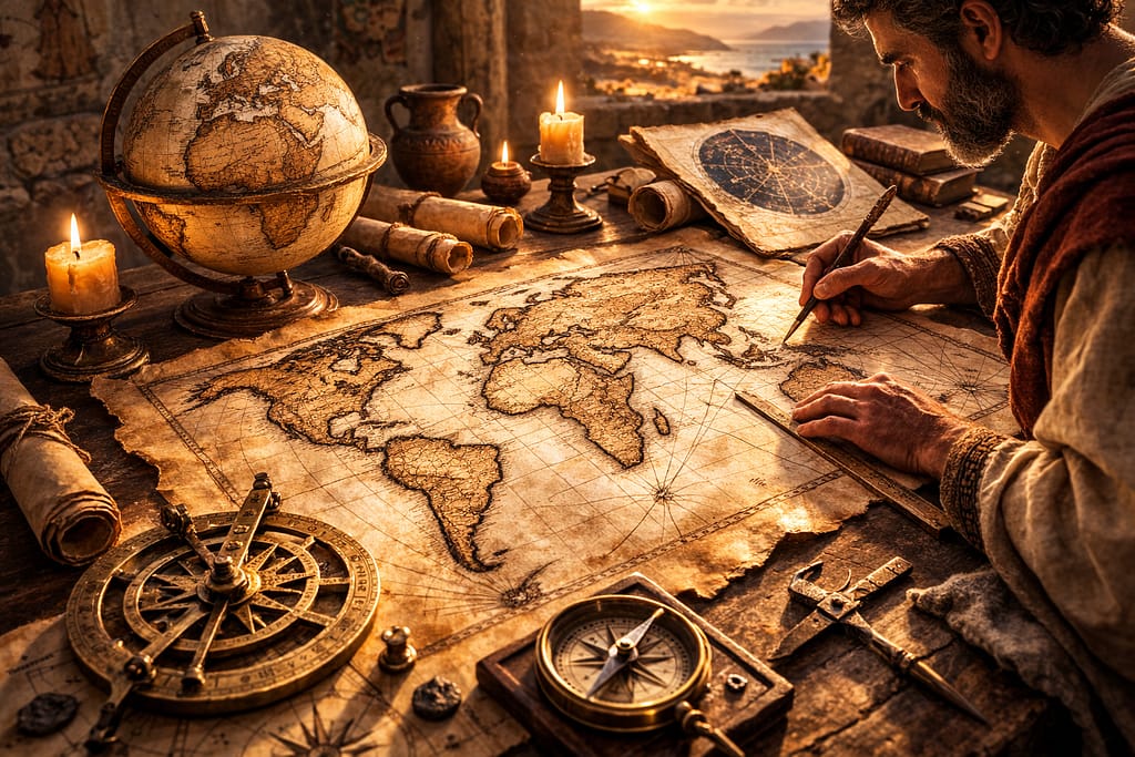 टॉलेमी की निर्देशांक प्रणाली ने भविष्य के मानचित्रण की नींव रखी।
