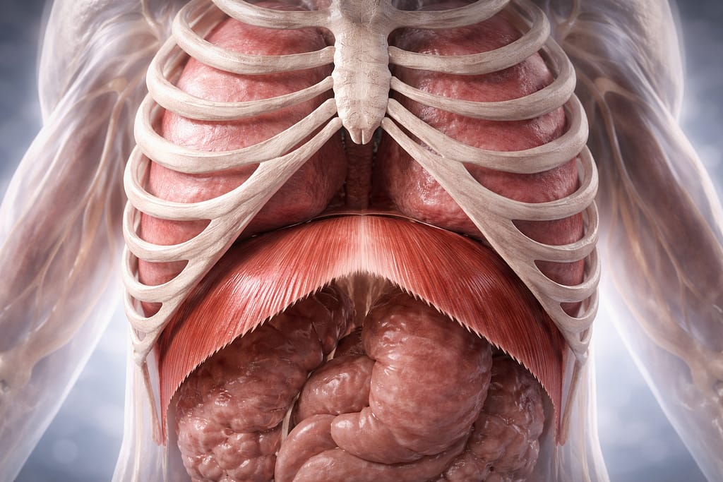 डायफ्राम फेफड़ों के नीचे स्थित एक गुंबदाकार मांसपेशी है।
